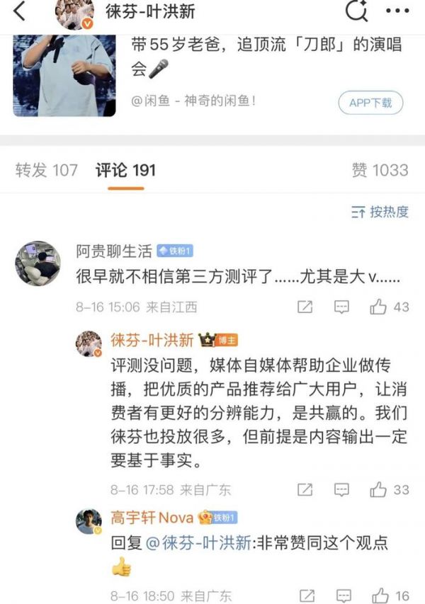 看到如此劲爆的吐槽,在该内容评论区,有不少网友表示质疑如今媒体评测的公正性,比如有网友表示:很早就不相信媒体评测了,尤其是大v。叶洪新则回应称:「评测没问题,媒体自媒体帮助企业做传播,把优质的产品推荐给广大用户,让消费者有更好的分辨能力,是共赢的。我们徕芬也投放很多,但前提是内容输出一定要基于事实。」