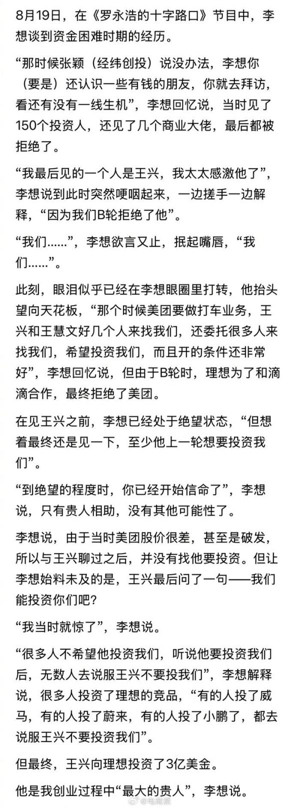 #李想称王兴是创业路上最大贵人# 李想谈美团王兴时哽咽落泪 :我太感激他了,他是我创业过程中最大的贵人。
