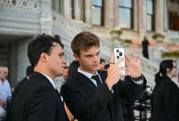 8月19日,在土耳其伊斯坦布尔华为新品发布会现场,嘉宾在试用华为手机。