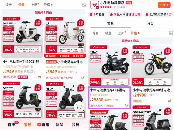 打开电商平台不难发现,在小牛电动旗舰店中,卖得最好的几款都在3800元以上,店内最贵的RQi车型甚至高达2.98万元。另外,早在今年6月,小牛电动锐智 VIP会员费用涨价的消息也引起了不少用户的吐槽。