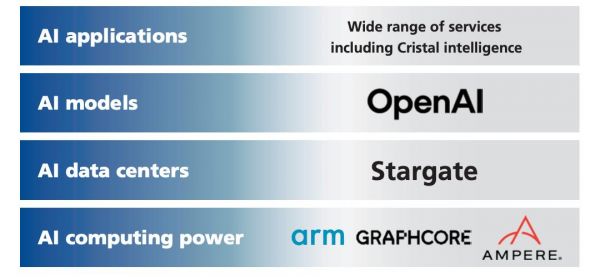 过去一年多时间里,软银连续出手:收购濒临破产的英国AI芯片公司Graphcore、领投OpenAI高达400亿美元的融资、斥资65亿美元收购Arm服务器CPU厂商Ampere、向Intel投资20亿美元、推动Stargate超级数据中心计划……从AI上层应用到底层算力架构,几乎每一步都是在补齐一个战略拼图。