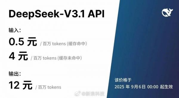 DeepSeek-V3.1发布并降价,9月6日生效