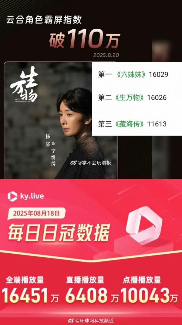 #生万物2025首部云合破亿#据云合数据统计,《生万物》于2025年8月20日以单日有效播放量破亿的成绩,成为年度首部达成此成就的剧集。