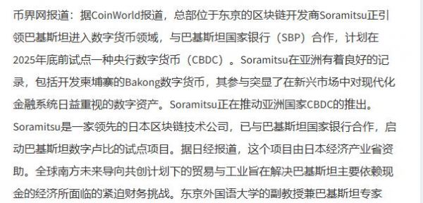 8月18日,巴基斯坦宣布与日本合作开展央行数字货币试点项目。