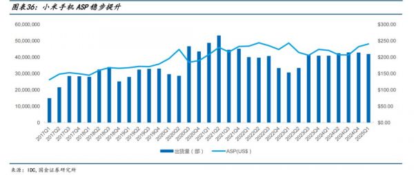手机行业进入平销期后,未来的看点不在于量,而在于价。小米手机的高端化战略也取得了成效,ASP在稳步提升。
