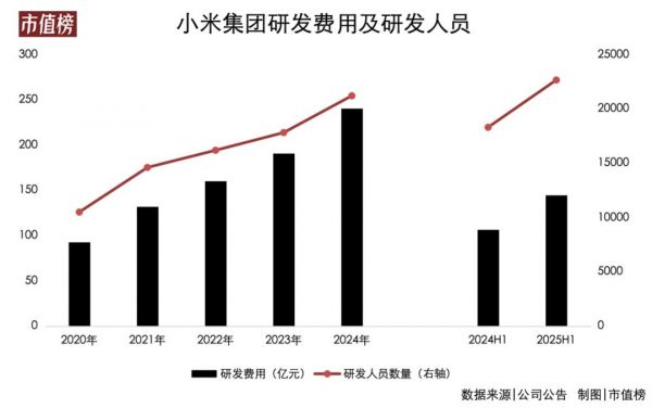 小米目前有研发人员2.23万人,二季度研发投入78亿,全年预计300亿元,未来五年计划在研发方面投入2000亿。特别是大举投入芯片业务,将进一步促进小米软硬件深度融合。今年发布的首款旗舰机SoC芯片玄戒O1,就是小米新征途的成功第一步。