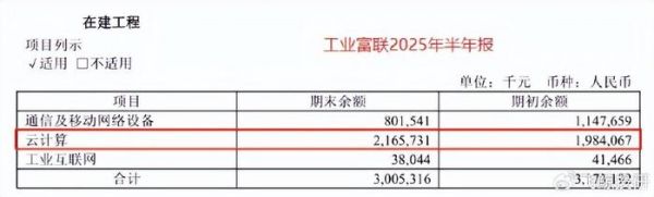 当然,工业富联也有持续的产能加码,截至2025年6月底,其在云计算领域仍有21.66亿元的在建工程。这些产能储备,也是公司在为承接AI算力需求铺平道路。