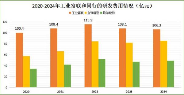 工业富联属于第二种,而且为了站稳脚跟,工业富联每年都要投入超100亿元的研发费用,2024年达到106.3亿元,约是净利润的50%。