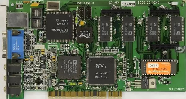 这款在1995年发布的显卡,不仅同时拥有2D、3D图像处理能力,同时还具备音频处理能力,看起来非常高大上。