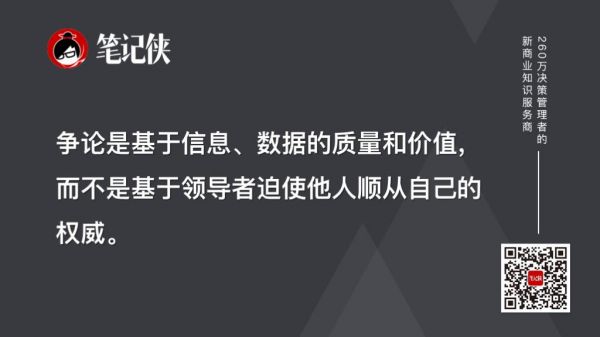 争论是基于信息、数据的质量和价值,而不是基于领导者迫使他人顺从自己的权威。