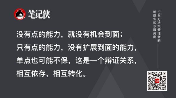 没有点的能力,就没有机会到面;只有点的能力,没有扩展到面的能力,单点也可能不保,这是一个辩证关系,相互依存,相互转化。