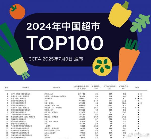 据中国连锁经营协会(CCFA)公布的最新数据,在过去一年里中国超市Top100企业销售规模约为9000亿元,同比增长0.3%;门店总数2.52万个,同比下滑9.8%。在消费市场日益多元化、消费者需求不断升级以及电商冲击等多重因素交织影响下,超市行业整体面临着巨大的转型压力。部分企业选择关闭效益不佳的门店,以优化资源配置,降低运营成本,集中精力打造核心门店和提升服务质量。