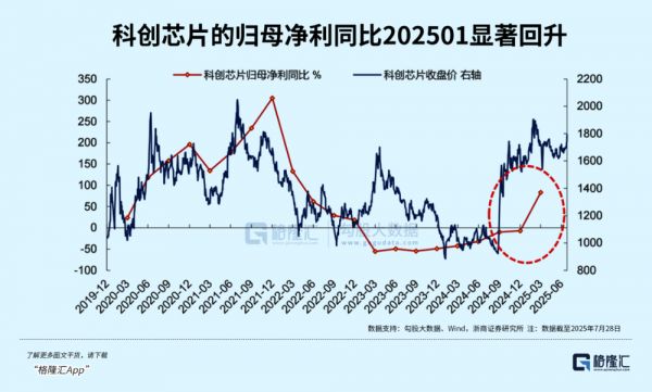 具体来看,科创芯片的归母净利同比在2023年和2024年整体处在底部震荡状态。但从2024年下半年以来,科创芯片自底部开始迎来持续改善。截至2025年O1,科创芯片指数归母净利同比从2024年底的-6.9%提升至83.2%。