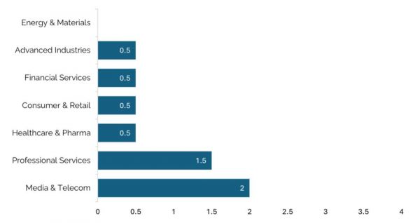 其余7个主要行业(能源与材料、高端制造业、金融服务、消费与零售、医疗与制药、专业服务)均停留在试点阶段观望,高关注却是低转化。