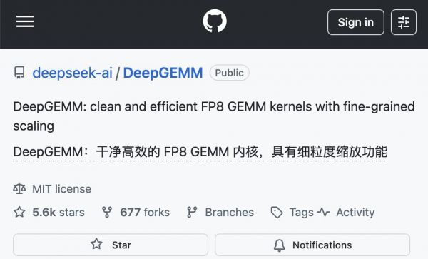 DeepSeek之前开源的5.6k星标项目FP8 GEMM内核DeepGEMM就已经支持UE8M0,不过这个项目主要是适配英伟达芯片和CUDA生态。