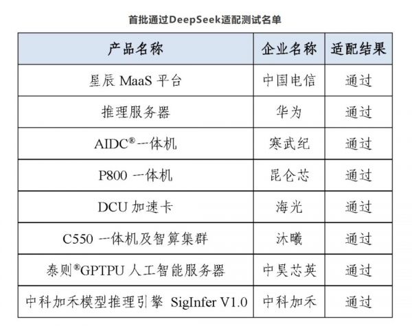 在官方有意卖关子的情况下,人们只好首先把目光放在了首批通过“DeepSeek大模型适配”的8家厂商。