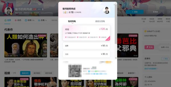 以近125万粉丝的“磕书的阿冉叔”为例,其最近的10条视频里,一半左右为充电视频,包月充电解锁视频最低档位在18元/月,也就是两杯奶茶或者一顿不错外卖的价格,如果特别喜欢他的视频,甚至一个月可以为他“氪金”128元。