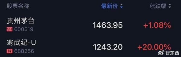 其最新价冲到1243.20元/股,与贵州茅台仅差220元。