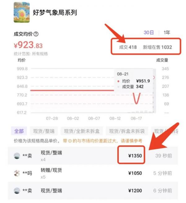 截至发稿,今日平台成交量高达418单,且大多数为整盒购买,交易数量仍在持续上升。