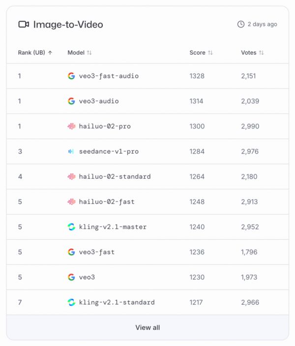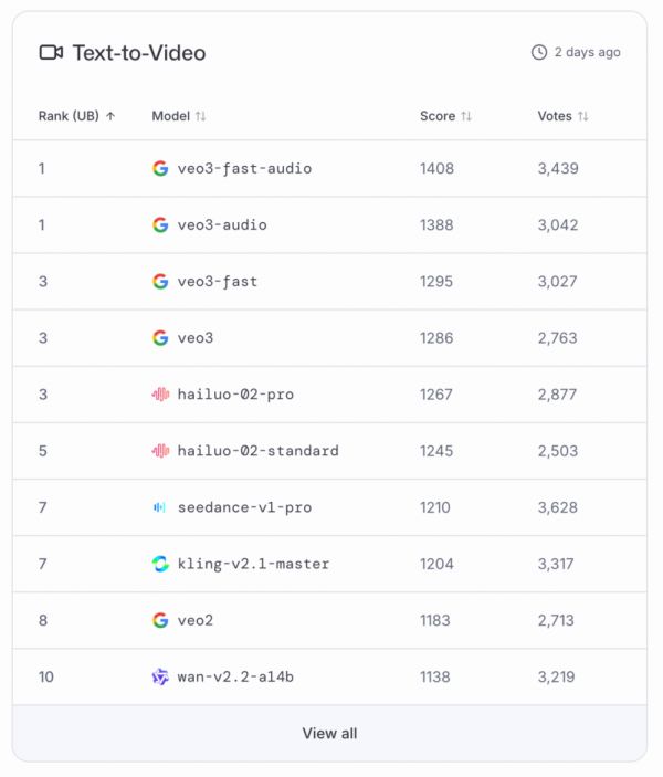 向左滑动查看更多内容,Google的模型在LMArena文本、视觉、文生图、文生视频、图生视频等任务上都是第一