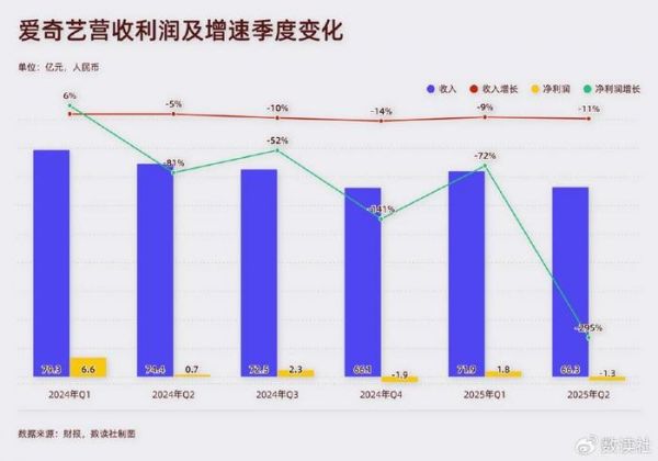 二季度,爱奇艺营收66.3亿元,同比下滑11%。最近四个季度,爱奇艺有两个季度营收跌破70亿。