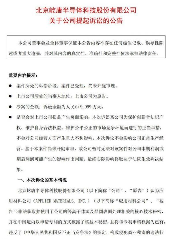 诉状直指应用材料构成商业秘密侵权,要求立即销毁技术资料并归还专利申请权。耐人寻味的是,这场诉讼恰是两年前交锋的镜像反转——2023年6月,应用材料曾指控屹唐子公司“窃取商业机密”,声称Mattson挖走其17名工程师。