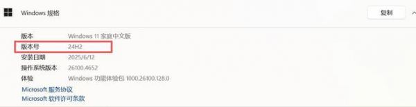 大家可以在设置——系统——系统信息(最底下)中查看自己的系统版本,像小雷手上的这台笔记本电脑系统版本就是24H2,只要你确定了自己的系统是24H2,那么就最好看看是否已经安装了KB5063878补丁。