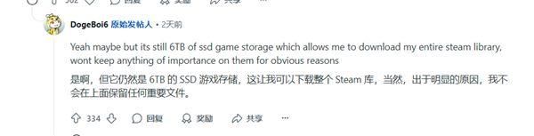 不过u/DogeBoi6表示,他并不打算在这些硬盘上存储任何重要数据,计划的是用它们来下载自己的整个Steam游戏库,这样即使硬盘出现故障,也不会造成太大问题。