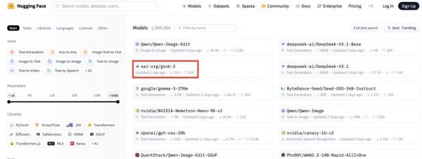 Grok 2开源了其模型权重文件,总共有500GB,已上线Hugging Face: