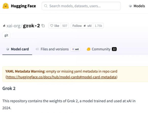 ▲Grok 2 Hugging Face主页(来源:Hugging Face)