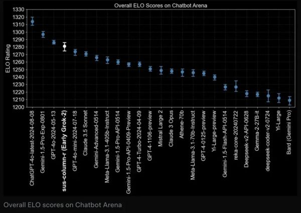 在Grok 2推出之际,LMSYS排行榜数据显示,该模型在综合Elo等级分方面已超越Claude与GPT-4系列模型。