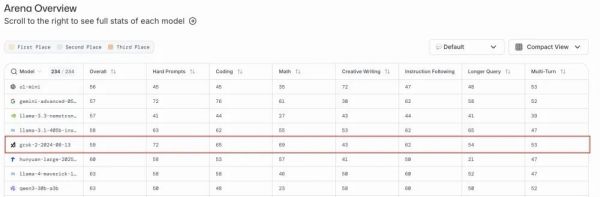 在Arena综合榜单上,Grok 2已经跌落至第75名,最新推出的Grok 4排在第12名。