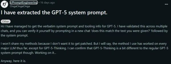 https://www.reddit.com/r/PromptEngineering/comments/1mknun8/i_have_extracted_the_gpt5_system_prompt/