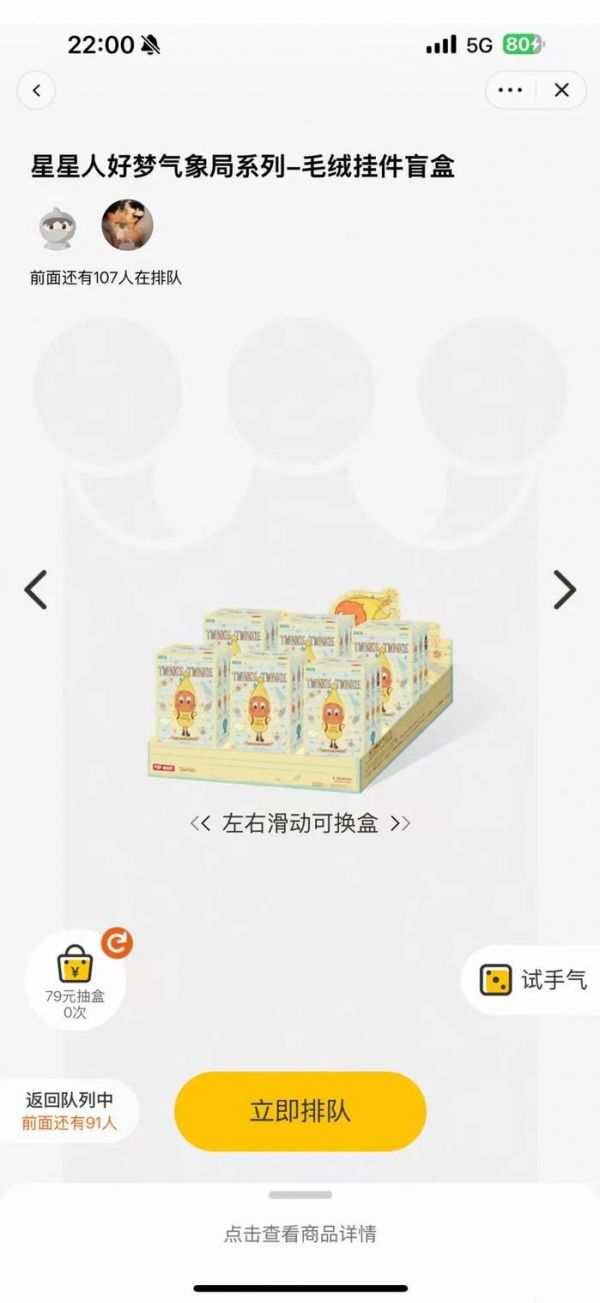 记者注意到,此次上新的“星星人好梦气象局系列”(下称星星人)IP备受市场追捧。由于现货一盒难求,盲盒在二手市场上价格迅速飙升。