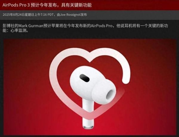 除了心率监测,AirPods Pro 3还将迎来设计上的调整,带来更舒适的佩戴体验;同时提供更优质的音效、优化主动降噪,并有望引入“实时翻译”功能。