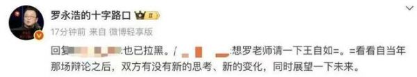 罗永浩先后回复:“已拉黑”“也已拉黑”。