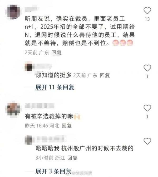 5月13日,据辛选方面称,由于业务调整,公司一部分业务转回了广州,包括直播业务,公司将在杭州、广州两地办公。有员工在小红书上反映,“有不去广州的,被裁了”。(上市之家)