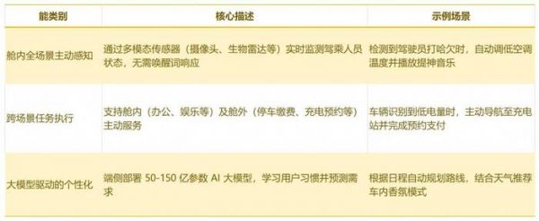 再到部分认知座舱(CL2),开始 " 察言观色 ",但还不够主动,支持多轮对话、免唤醒词(单区域)、基础手势控制等,具备 OTA 功能,能识别驾驶员身份、推送个性化功能等。目前行业也就处在这一阶段。