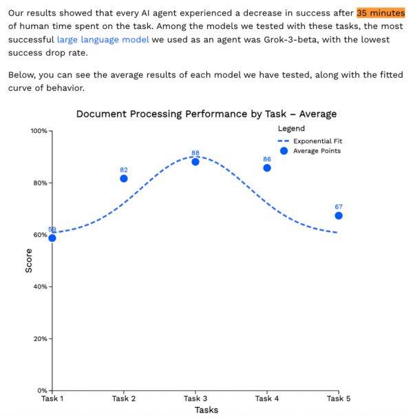AIMultiple在其2025年一份研究报告中称,每款AI智能体在任务持续35分钟后,成功率均下降,暴露了上下文管理、工具调用、反馈机制的瓶颈。