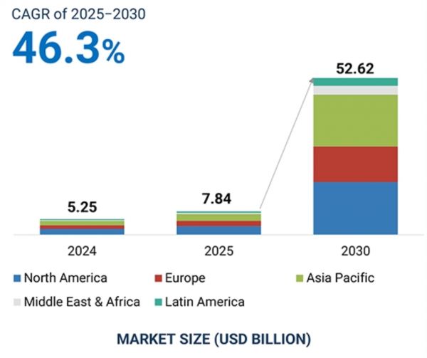 权威市场研究报告预测,预计2025年,全球AI智能体市场规模达78.4亿美元。到2030年,市场有望扩张至526.2亿美元。