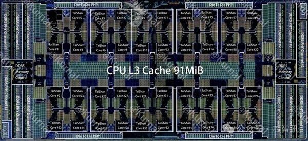 因此,鲲鹏930 的CPU内核总数为120个。每个CPU die都拥有2MB 的二级缓存并共享 91MB 的三级缓存。仔细检查 CPU 芯片可以得出结论,它基于华为自研的基于Arm指令集的“泰山”核心。