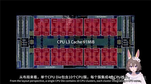 具体到CPU die的尺寸为 23.47mm x 10.75mm,包含十个CPU集群,每个集群由四个CPU内核,这意味着单个CPU die 有 40 个CPU内核。