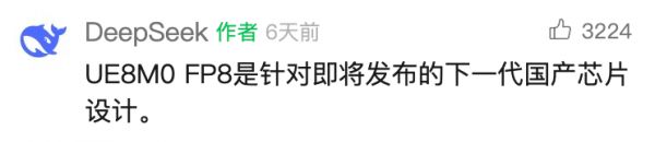 但更重要的信号还在于,DeepSeek V3.1引入了一种称为“UE8M0 FP8 Scale”的新参数精度格式,并明确表示这是“针对即将发布的下一代国产芯片设计”的精度格式。
