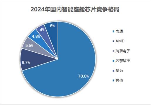 2024年高通在国内智能座舱芯片市占率高达70%,远超AMD、瑞萨电子、华为等公司。