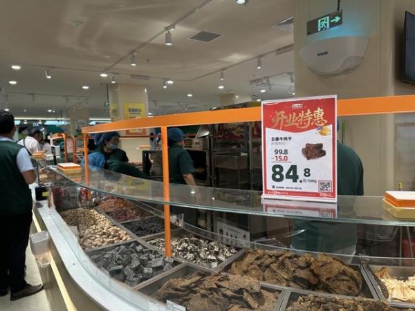 南方店正式营业不到半小时,店内就涌入了2000多名顾客。陈明接受采访时,嗓子都是哑的,因为包括他在内的超市全体员工,早已提前“高速运转”起来。“试营业那天,本来只想跑一下系统,没想到顾客购买热情高涨。”