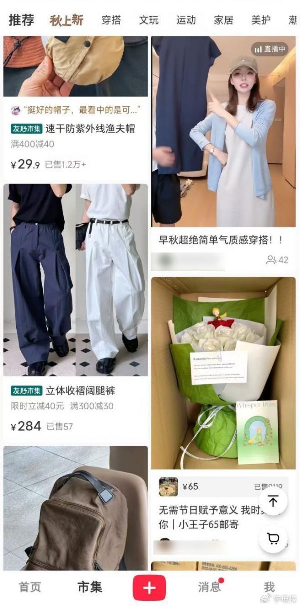 从内测形态看,“市集”的内核是标准的商城页。但差异化在于,它保留了小红书首页标志性的双列流设计,商品以场景化笔记、带货直播等形式呈现,延续了社区“逛”的体验,与传统货架电商的功能性展示形成区隔。