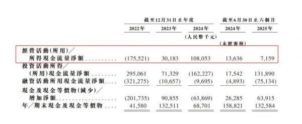 数据显示,从2022年到2024年,以及2025上半年,小鹅通经营活动所得现金流量净额分别为-1.76亿元、3018.3万元、1.08亿元及715.9万元。