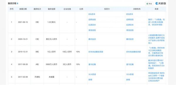 天眼查APP显示,从2017年的天使轮融资到现在,小鹅通经历了数轮融资,在2021年的D轮融资中,IDG资本、高瓴创投等机构参投,彼时融资金额为1.2亿美元。此前,腾讯、好未来都曾参与小鹅通融资。