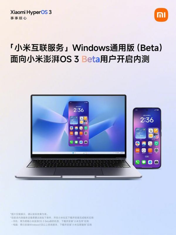 小米互联服务Windows通用版(Beta)于今日正式启动内测,已升级至澎湃OS 3 Beta 版的小米机型用户能够抢先体验这一功能。