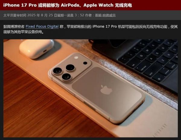 除此之外,还有传闻称,苹果在为iPhone 17 Pro系列测试“反向无线充电”功能。